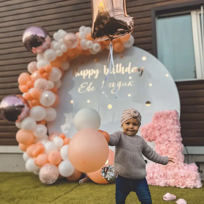 Фотозона "Круглая" Выполнена на каркасе+белый глянцевый круг Пышная гирлянда из воздушных шаров (цвет можно изменить) Лююбая ваша надпись на круге Каркас с фоном идет в аренду, забираем после мероприятия.