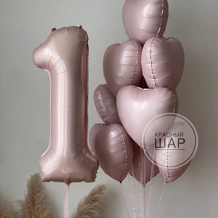 Набор из цифры и фонтана из фольгированных сердец Состав: Цифра на атласной ленте Фонтан из 10 фольгированых сердец 18" на атласной ленте 2 грузика Цвета могут быть изменены.