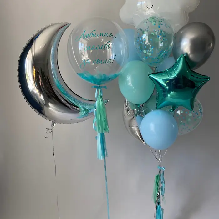 Набор из пышной связки, фольгированной фигуры, шара-бабл с индивидуальной надписью,