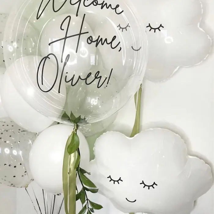 1 шар бабл 24" с индивидуальной надписью и зеленью,