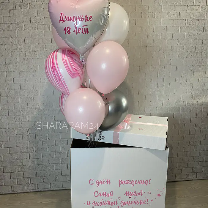 1 коробка-сюрприз с индивидуальной надписью и лентой на крышке,