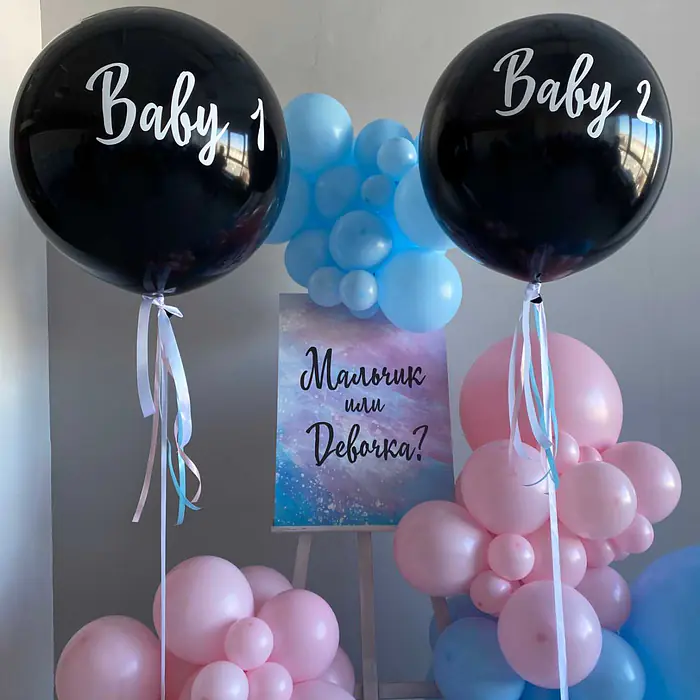 Состав: 2 гендер шара черных 24" мольберт(аренда) с плакатом гирлянда из шаров