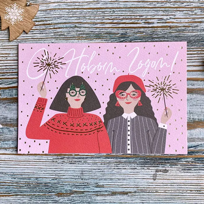 Открытка на акварельном картоне «Подружки», тиснение, 10 х 15 см