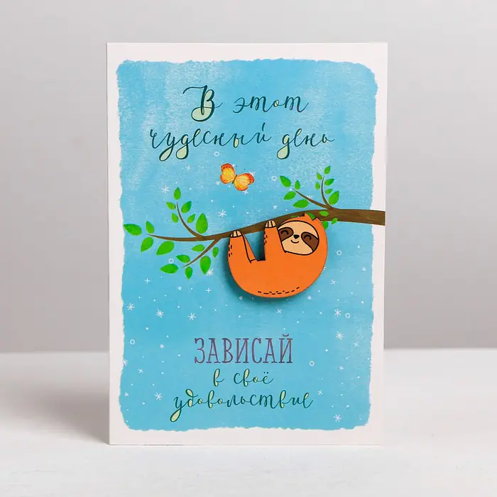 Открытка с деревянным доп.элементом «Ленивец», 10 × 15 см