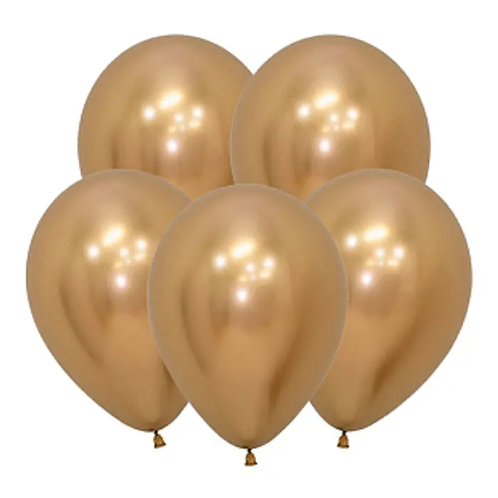 Изготовлены из 100% натурального латекса, шары Chrome обладают эффектом хромированного блеска и представлены в различных оттенках, включая золото. Размер 12 дюймов (30 см) — самый популярный среди аэродизайнеров, так как идеально подходят для создания фонтанов из шаров, наполненных гелием, а также для оформления современных декораций, тематических арок и ярких акцентов.
