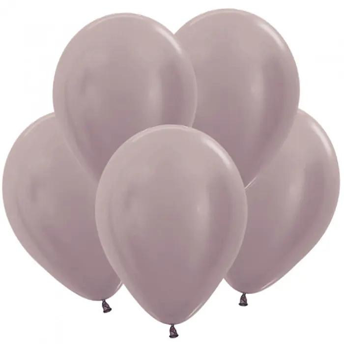 Изготовлены из 100% натурального латекса, шары Pearl обладают нежным перламутровым блеском и представлены в различных оттенках, включая серо-бежевый. Размер 12 дюймов (30 см) — самый популярный среди аэродизайнеров, так как идеально подходят для создания фонтанов из шаров, наполненных гелием, а также для оформления свадебных арок, гирлянд и романтических композиций.