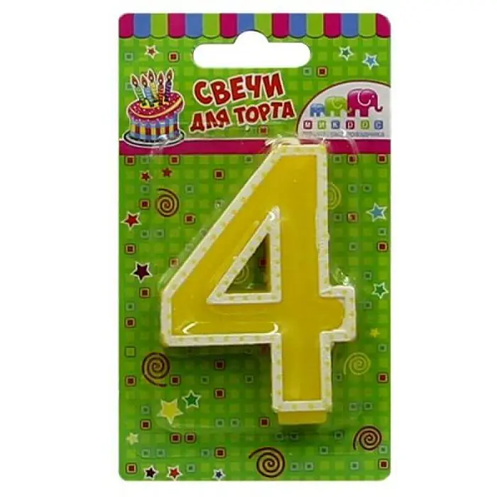 Свеча, цифра 4, желтая